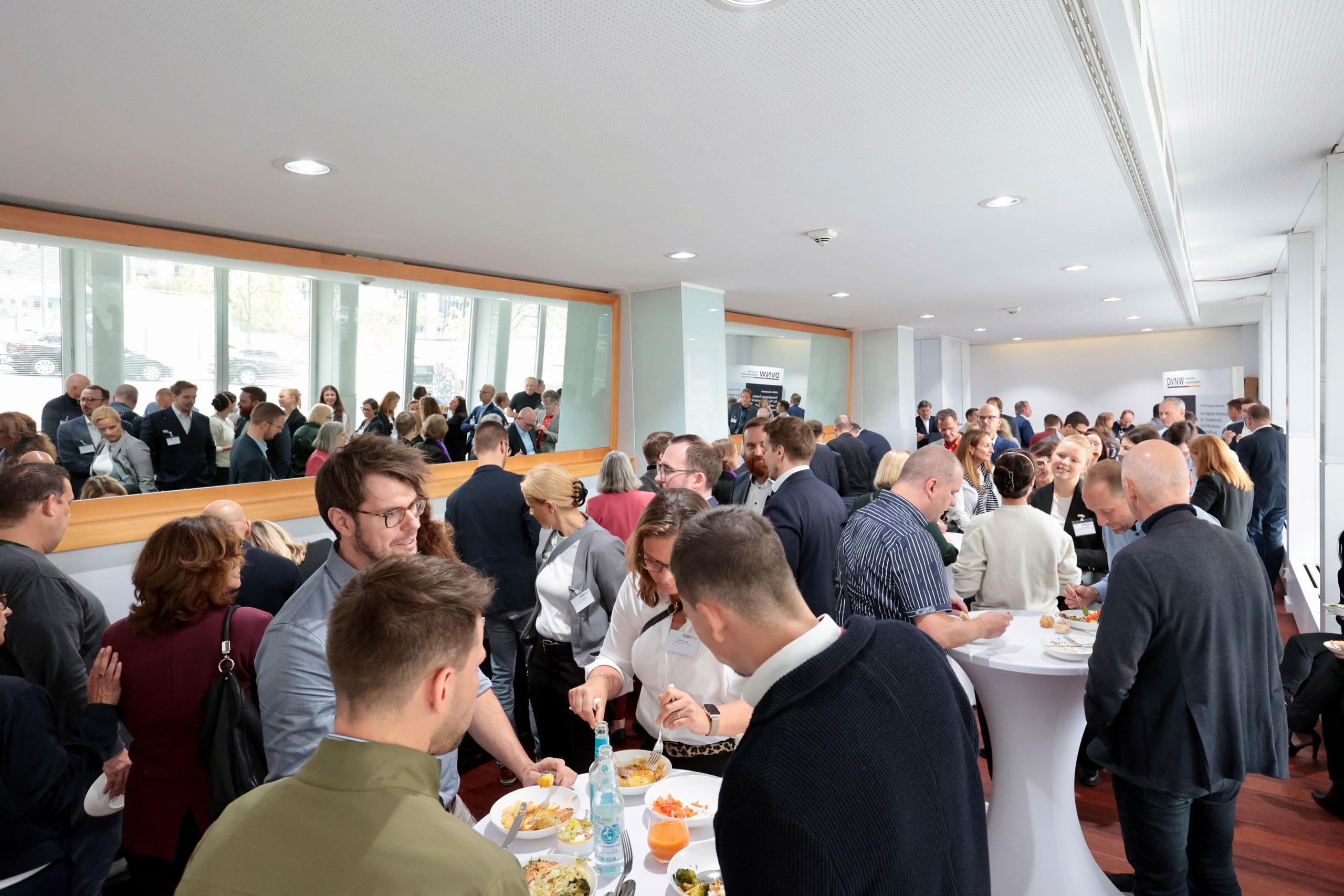Neben fachlichen Vorträgen, Podiumsdiskussionen und interaktiven Workshops hatten die Teilnehmenden bereits am Vorabend im Rahmen des Vergabesalons erste Gelegenheit zu Austausch und Networking – bei leckeren Speisen und Getränken.